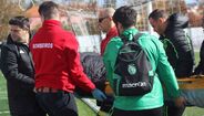 Diogo Almeida sofreu uma pancada na cabeça quando saiu aos pés de um adversário, já na parte final do encontro, e teve mesmo de ser transportado ao Hospital de Leiria.