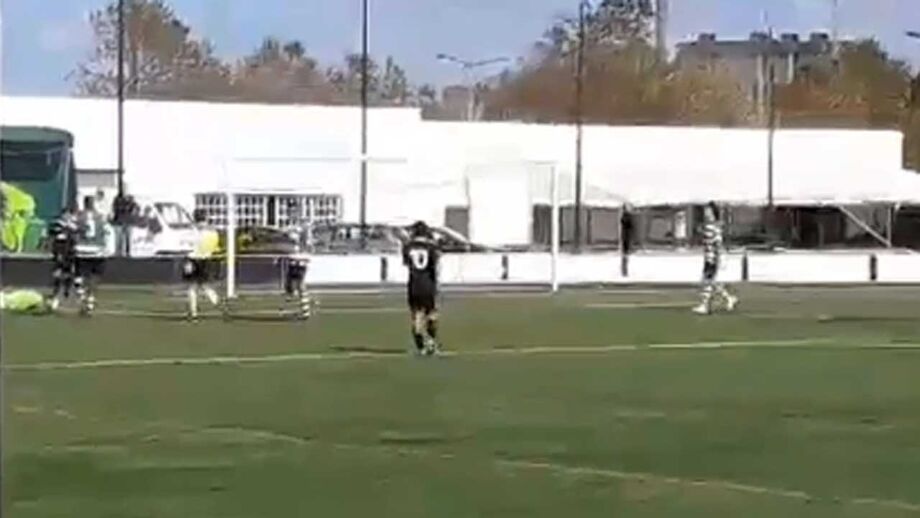 O Sporting ganhou ao AF Marinha Grande, por 3-0, este domingo, na 8.ª jornada do Campeonato Nacional de juvenis, mas o jogo não acabou bem para o guarda-redes dos leões. Veja aqui o lance.