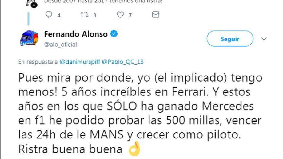 "Parabéns Fernando Alonso, alguém te ultrapassou na tomada de uma má decisão", escreveu o usuário do Twitter DaniMur/ZzazZ.