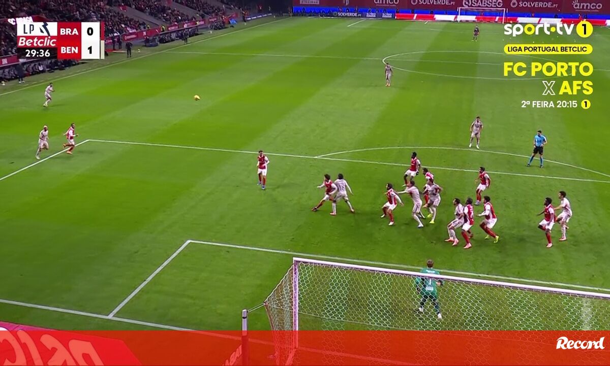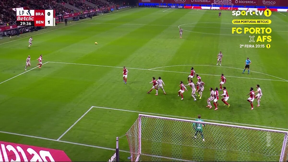 O golo de Otamendi que abriu o marcador no Sp. Braga-Benfica: João Moutinho pediu falta