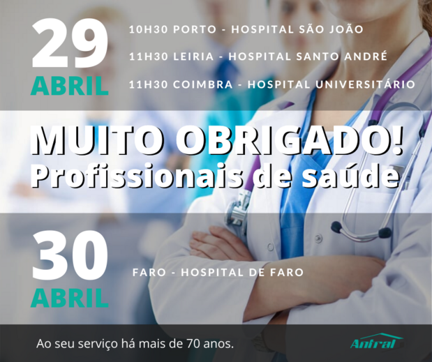 A Antral continua, assim, a sua campanha solidária de Norte a Sul do País, demonstrando, o agradecimento aos profissionais de saúde que vêm enfrentando, com risco da própria vida, o ataque ao surto COVID-19.