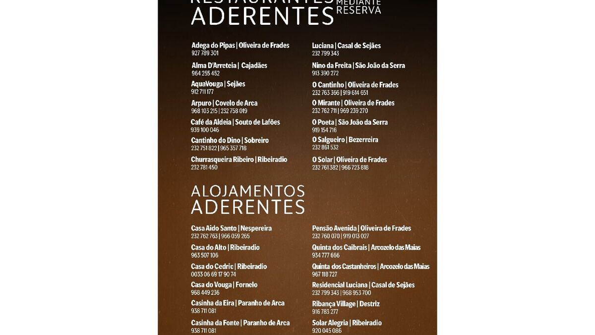 Com esta primeira edição da Rota da Cabidela e dos Vinhos de Lafões, o Município reforça a afirmação de Oliveira de Frades como destino turístico de referência e Capital do Frango do Campo, promovendo a economia local e convidando a descobrir um território onde a gastronomia, a cultura e a identidade se encontram.