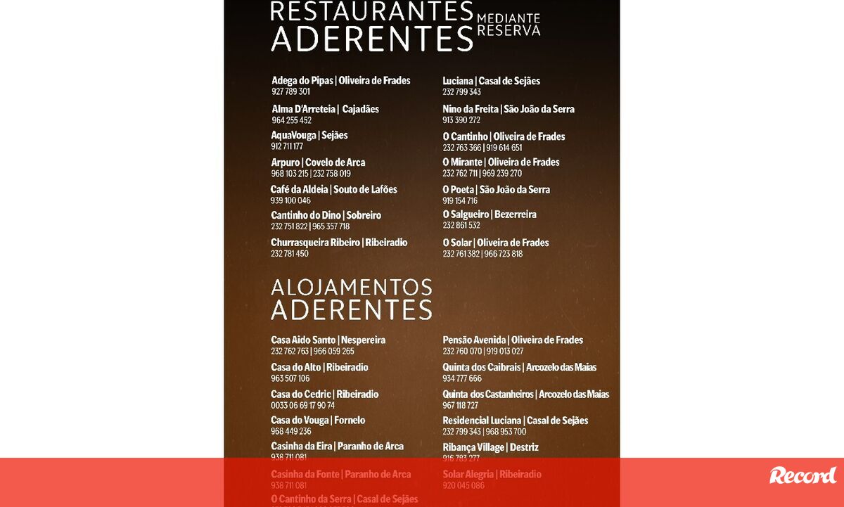 A Rota conta ainda com a adesão de catorze restaurantes do concelho, que durante o evento irão confecionar o típico prato da cabidela, e de treze alojamentos locais, que disponibilizarão um desconto de 10% aos participantes.
