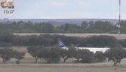 O avião aterrou às 15:28 na pista 19 do aeroporto de Beja, à terceira tentativa, depois de ter borregado (termo técnico da aviação para designar tentativas frustradas de aterragem) duas vezes. Segundo a mesma fonte, "a aterragem correu bem". Antes de aterrar, o avião sobrevoou a região de Santarém e o Alentejo, fazendo uma trajetória irregular e descrevendo vários círculos no ar.
