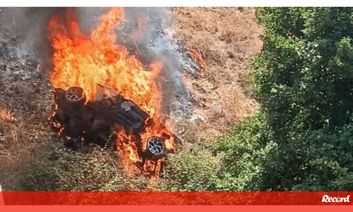 Viatura deflagrou em chamas e incêndio passou para a zona de mato. Trânsito encontra-se interrompido.