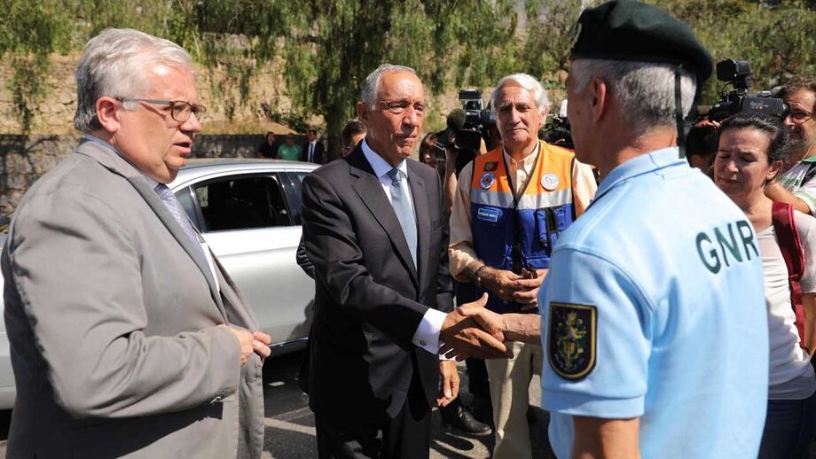 Marcelo Rebelo de Sousa dirigia-se assim aos operacionais que o aguardavam à chegada ao posto de comando da Proteção Civil, instalado no centro da vila de Monchique, no distrito de Faro.