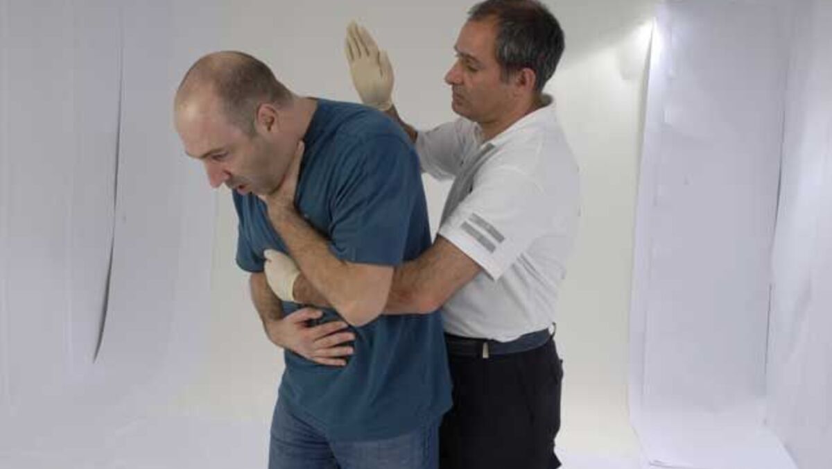 Pode demonstrar grande aflição e ansiedade, sendo necessário atuar rapidamente para a obstrução não resultar na morte da vítima. Na obstrução por corpo estranho, deve começar por tentar desimpedir a via aérea, com aplicação de pancadas interescapulares (ver fotografia), e no caso de insucesso deve efetuar a manobra de Heimlich, que explicaremos na próxima rubrica. Em qualquer caso deve ligar 112.