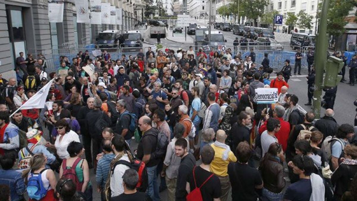 A mais numerosa é a marcha procedente da Praça de Espanha onde, segundo estimativas de agentes policiais, estarão "milhares de pessoas". O protesto é o tema dominante nas redes sociais espanholas com fotos e vídeos de manifestantes a darem conta da elevada presença em três assembleias organizadas durante a tarde mas, especialmente, a documentar a forte presença policial. As autoridades espanholas declararam "tolerância zero" para os manifestantes que participem em qualquer tentativa de cercar o Congresso.