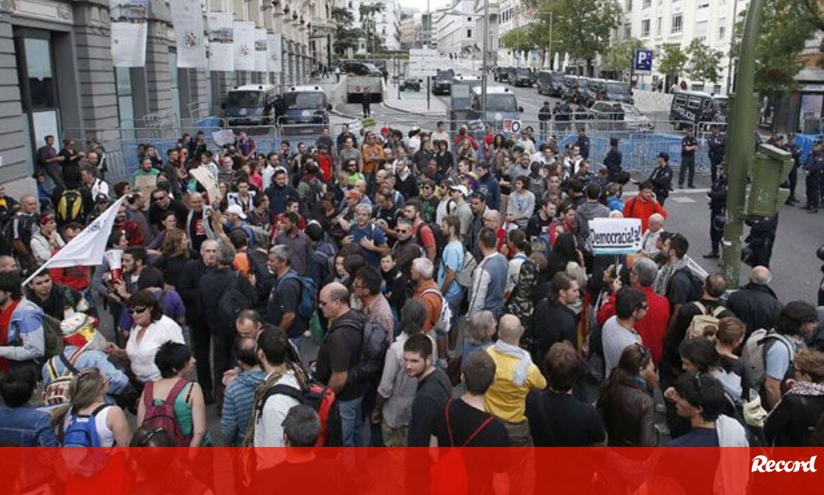 Milhares de pessoas estão concentradas, junto de barreiras de segurança, em todos os pontos de acesso ao Congresso de Deputados, em Madrid, no âmbito do protesto 'Cerca o Congresso', que decorre sob forte presença policial.
