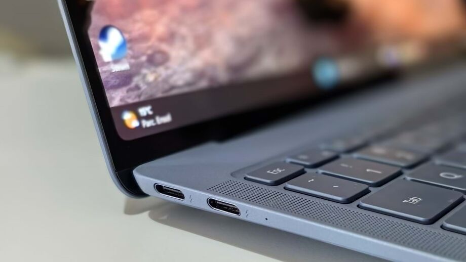 Em termos de conexões, ao ser um portátil tão fino, conta apenas com três entradas USB-C. Neste âmbito, o pacote de venda vem com um adaptador USB-C para USB-A, o que permite ter sempre pelo menos uma possibilidade de conexão. Já entradas HDMI... nem vê-las. É um aspeto que o penaliza, mas é o preço a pagar por levarmos um portátil tão fino. Pessoalmente, apesar de ser algo por vezes útil, não nos causa problemas a sua ausência.