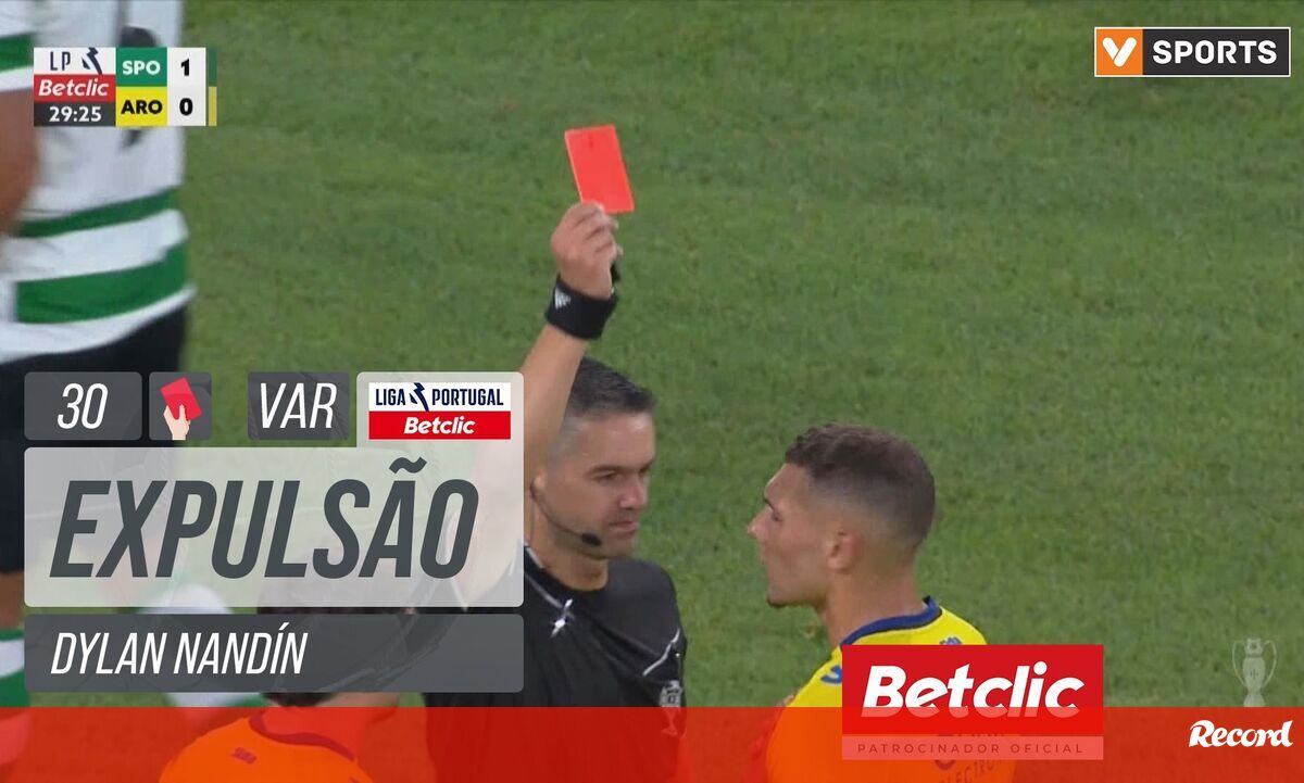 Explicação de Duarte Gomes: Sabemos que o jogador teve toda a intenção de jogar a bola. Não se coloca aqui a questão da cabeça baixa, porque não baixou a um nível inferior ao da cintura do Gonçalo Inácio. Esta entrada é completamente despropositada, que deixou marcas. É uma entrada de perna esticada, numa zona onde já não está a bola já é com uma consequência física visível. Na nossa opinião as recomendações são sempre para o cartão vermelho. Já o penálti nem se coloca [em discussão].