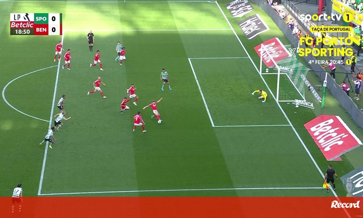 O penálti de Luis Suárez defendido por Trubin foi o lance mais polémico do dérbi Sporting-Benfica (1-2), pelo facto de Andreas Schjelderup ter cortado a bola pela linha lateral depois de invadir a área no momento do remate do avançado leonino.