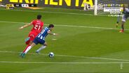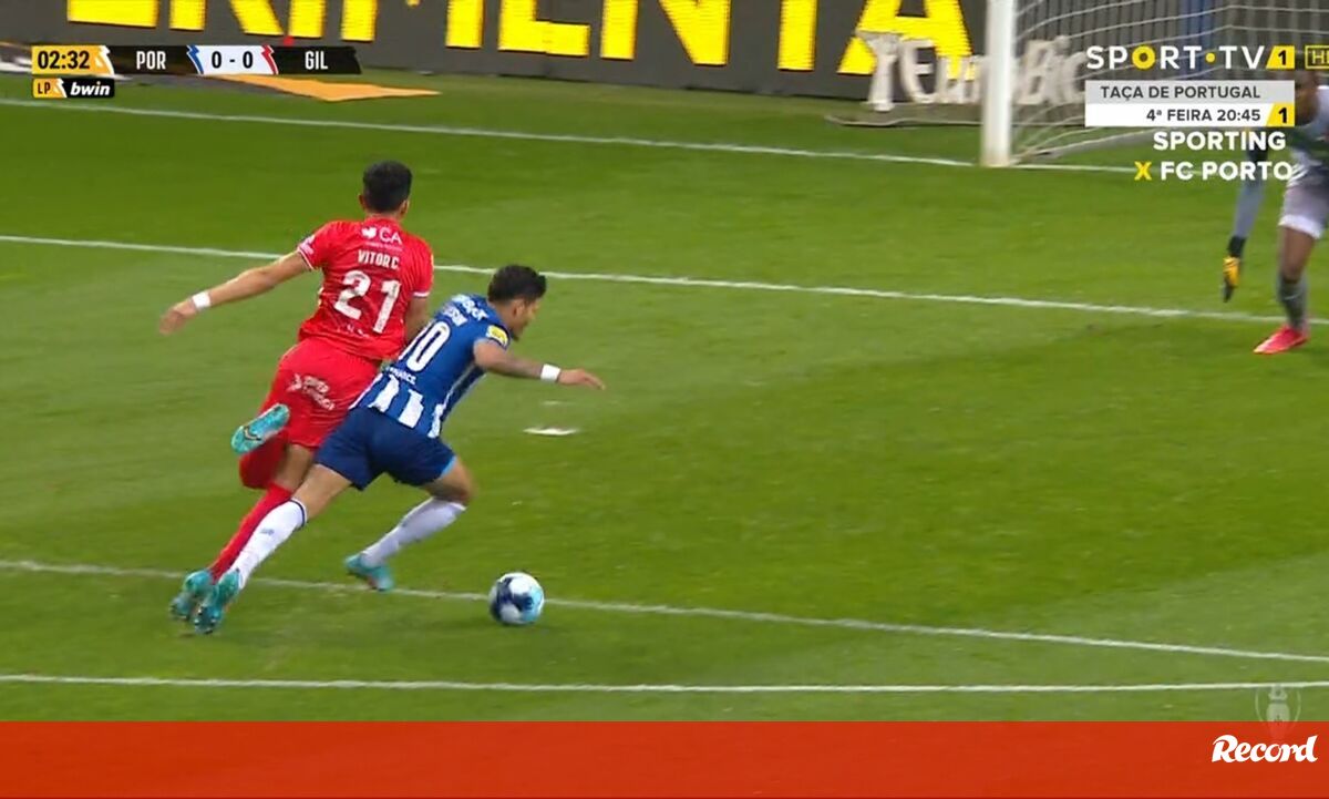 Se o árbitro considerou que era uma ocasião clara de golo, teve de mostrar o vermelho [1]. Para mim, só há um problema: não houve nenhuma falta. O avançado do FC Porto, quando vai a correr, estica a perna esquerda para haver contacto com o defesa, para ser carregado e o adversário ser expulso. Não era sequer falta, foi uma ação normal de jogo. Má expulsão do jogador do Gil Vicente.
