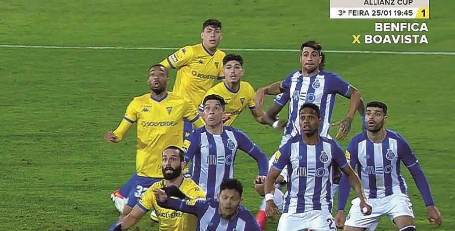 O contacto junto ao primeiros poste não é falta, não é... nada. Perguntaria ao árbitro: se fosse ao contrário, assinalava penálti? Com certeza que não. São disputas de bola, há sempre contactos. A bola nem sequer está em disputa entre os jogadores que o árbitro assinalou. Numa situação destas, só podes anular o golo se vires uma falta que seja de grau 9, numa escala de 10. Neste caso, seria uma falta de 4 ou 5. O golo do Estoril era legal [1].