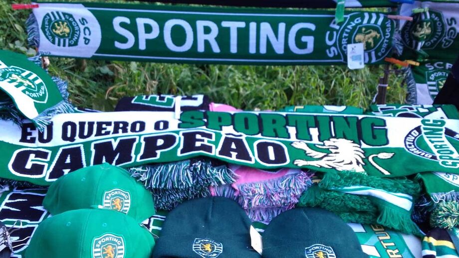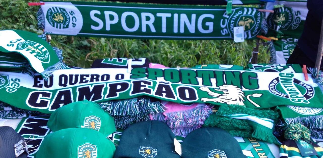 Com o Sporting em primeiro lugar e com o título na mira, este cachecol saiu para o jogo de hoje, entre os leões e o Benfica. Nesta banca, como a foto documenta, só estão visíveis artigos alusivos ao leão. Os do Benfica, dizem-nos, estão escondidos por uma medida de proteção. "Se passar por aqui um grupo, pelo menos um atira um esqueiro para queimar", referem os vendedores, que não querem ser fotografados.