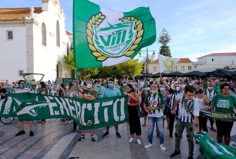 Inconformados com a decisão da LPFP, vitorianos e setubalenses compareceram vestidos a rigor, com camisolas, cachecóis e bandeiras junto da estátua de Bocage, que tem na sua base dezenas de cachecóis que os adeptos têm aí depositado desde o fim de semana.