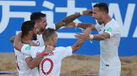 5' - Zurlo atira, a bola ressalta na areia mas sai ao lado da baliza portuguesa.