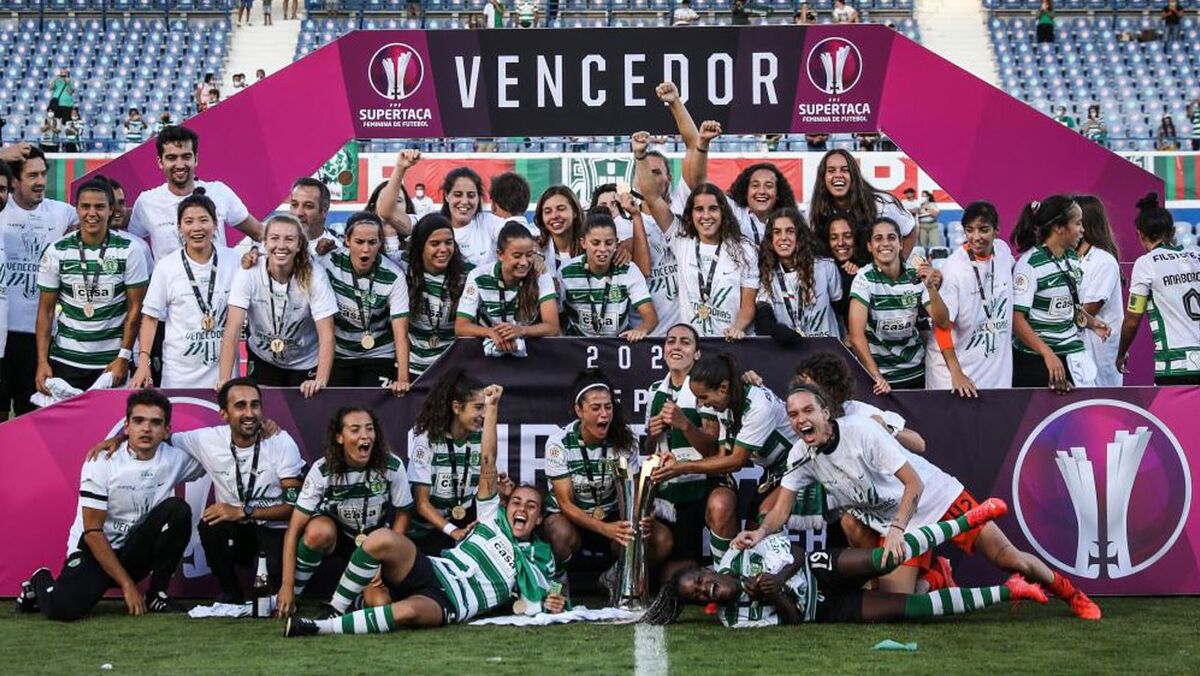 Jogadoras do Sporting já festejam a conquista da Supertaça