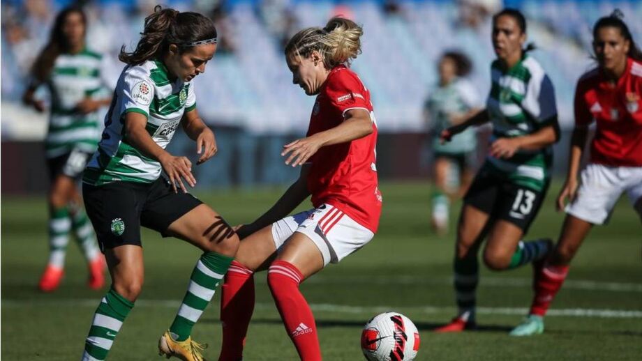 15' - Remate de Andreia Faria bate na cabeça de Carolina Beckert que por pouco não trai a guarda-redes do Sporting. Canto para o Benfica.