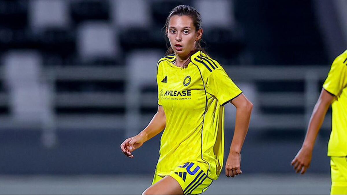 Andreia Faria ajudou o Al Nassr a vencer esta segunda-feira a Supertaça saudita diante do Al Ahli. A médio, de 25 anos, que está a viver a primeira experiência fora de Portugal depois de ter representado o Benfica durante sete temporadas, saltou do banco aos 60 minutos, fez o 2-0 para a equipa de Riade nos descontos (90'+4) e festejou à... Cristiano Ronaldo. O Al Nassr estava em vantagem desde os 46' graças ao autogolo de D. Abuladan.