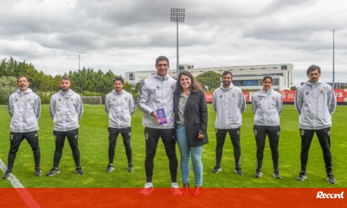 A entrega do prémio a Ivan Baptista, técnico principal das encarnadas, esteve a cargo de Ana Teixeira, embaixadora da Liga BPI, no final de mais um treino realizado no Seixal. O treinador do Benfica fez questão de partilhar a distinção com todos os elementos do seu staff.