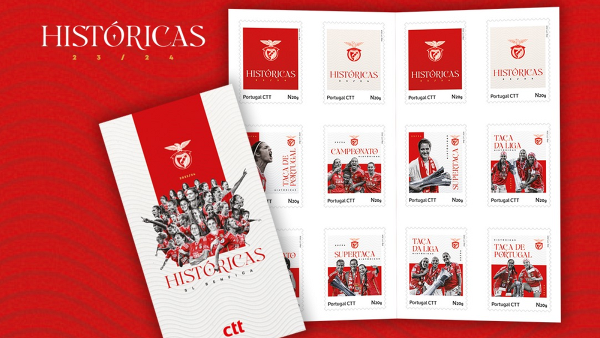 Os CTT - Correios de Portugal - lançaram esta segunda-feira uma coleção de selos personalizados que visam celebrar as conquistas da equipa feminina de futebol do Benfica referente à época de 2023/24.