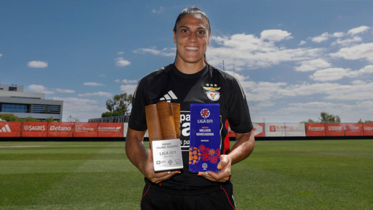 Cristina Martín-Prieto, avançada espanhola de 32 anos do Benfica recebeu no Benfica Campus os prémios de Melhor Jogadora e Melhor Marcadora da Liga BPI 2024/25.