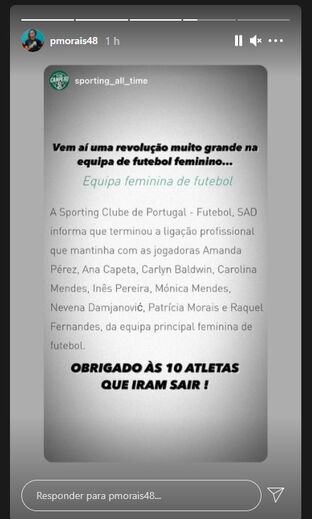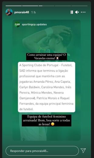 Como reação à tomada de decisão dos responsáveis verde e brancos, a internacional portuguesa partilhou na sua conta de Instagram várias imagens com textos onde se critica a decisão do clube em deixar sair estas jogadoras e visando o presidente Frederico Varandas.