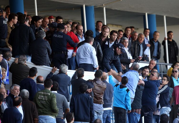 O lance polémico - que originou os desacatos na bancada - aconteceu aos 73 minutos, com Erivalto a rematar rasteiro e a ficar a dúvida se a bola chegou a passar totalmente a linha de golo antes do corte de Nuno Diogo.