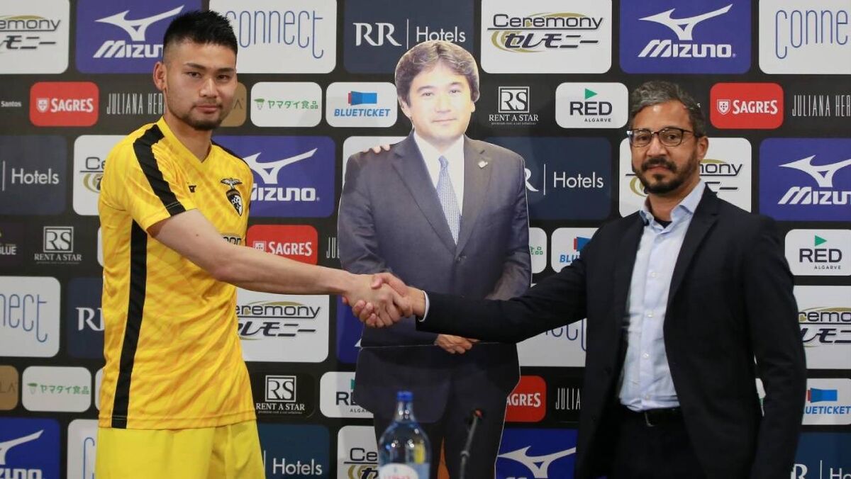 Tsukasa Shiga, CEO da Ceremony, patrocinador da SAD do Portimonense, esteve presente... em cartão
