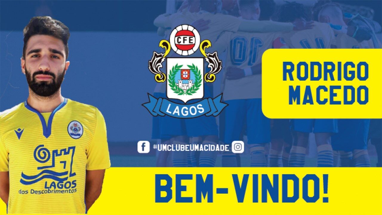 O defesa Rodrigo Macedo, de 22 anos, é reforço do Esperança de Lagos, clube que vai participar no Campeonato de Portugal.
