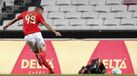 3' - Cruzamento de Nuno Tavares para Vinícus, que cabeceia fraco para a defesa de Matheus.