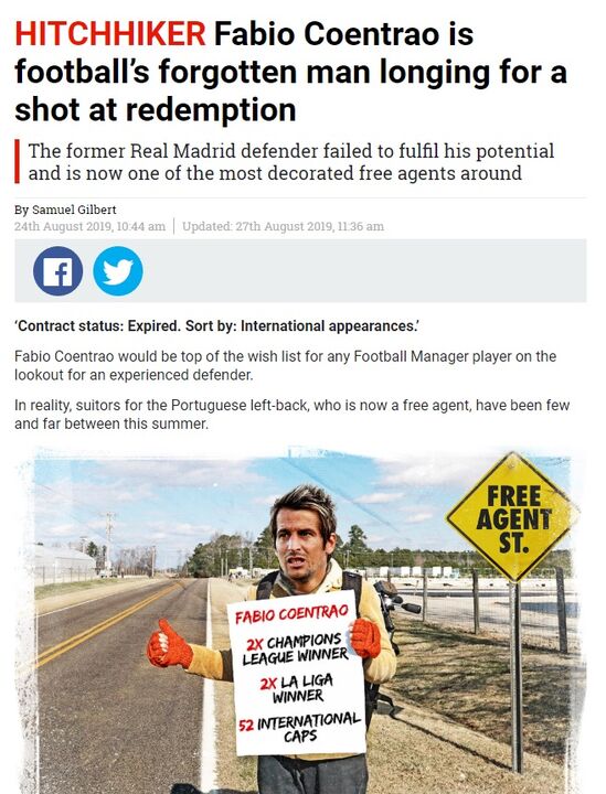 Coentrão é muito elogiado pelos vários momentos positivos da carreira e o autor do artigo chega mesmo a questionar o que levará um jogador com tanta história no desporto-rei a não ter sido ainda resgatado por um emblema dos principais campeonatos europeus.