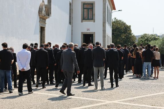 As cerimónias arrancaram na Capela da Ressurreição e, depois de um curto período, o cortejo fúnebre seguiu para a Igreja Matriz de Gondomar, com amigos e família dos dois jogadores a ajudarem a transportar as urnas.