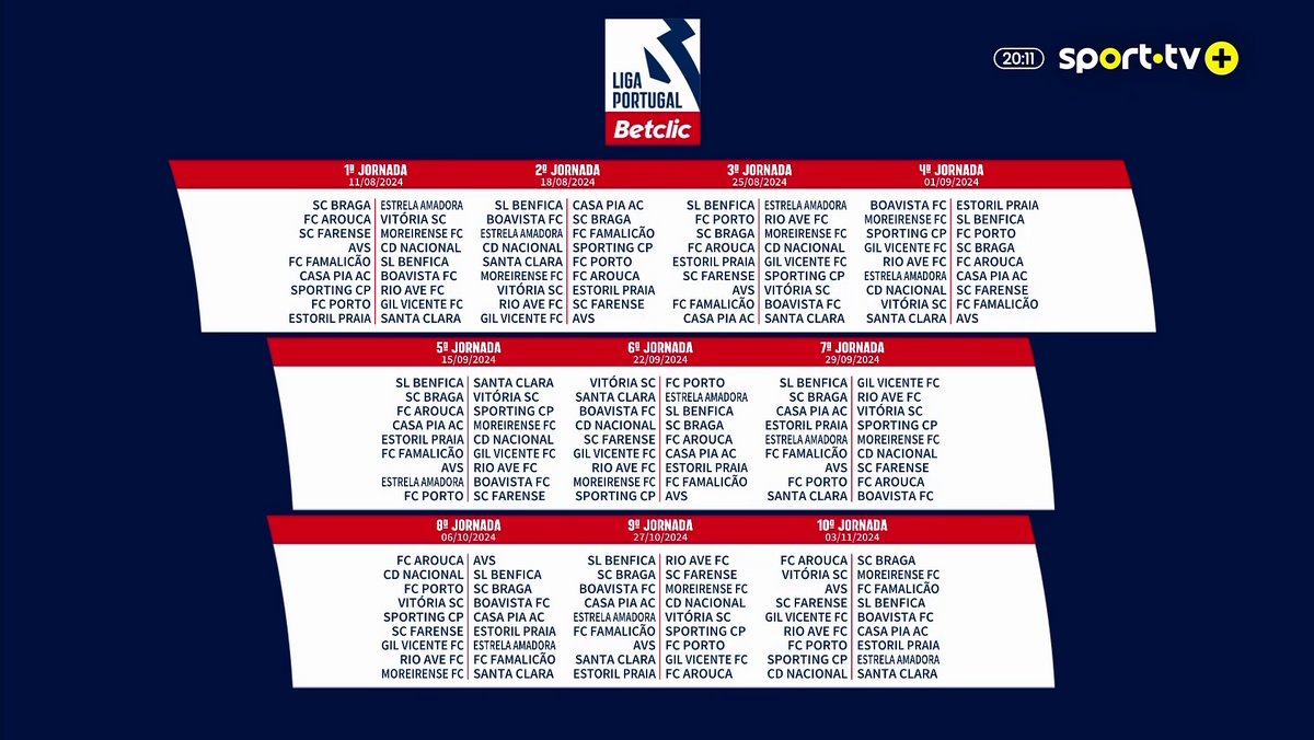 A Liga Portugal, em conjunto com a Federação Portuguesa de Futebol (FPF), aprovou no passado dia 30 de abril, o calendário para a época 2024/25, definindo que as competições profissionais arrancam no fim de semana de 10 e 11 de agosto, com as primeiras jornadas da Liga Betclic e da 2.ª Liga. As duas provas prolongam-se depois até ao fim de semana de 17 e 18 de maio de 2025.
