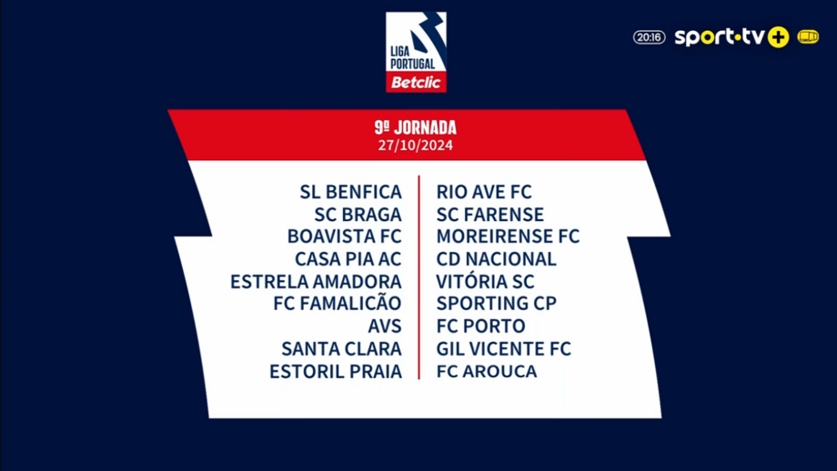 Para que não lhe falte nada, deixamos aqui todos os jogos entre Sporting, Benfica e FC Porto no campeonato em 2024/25: