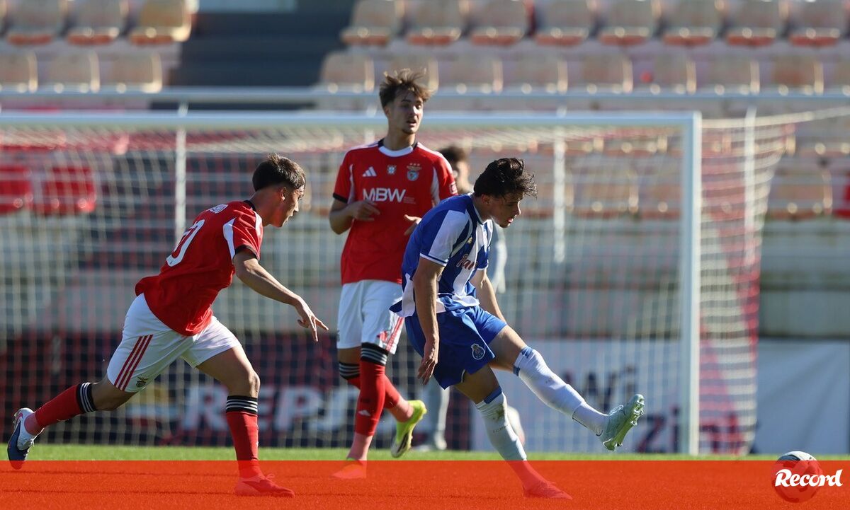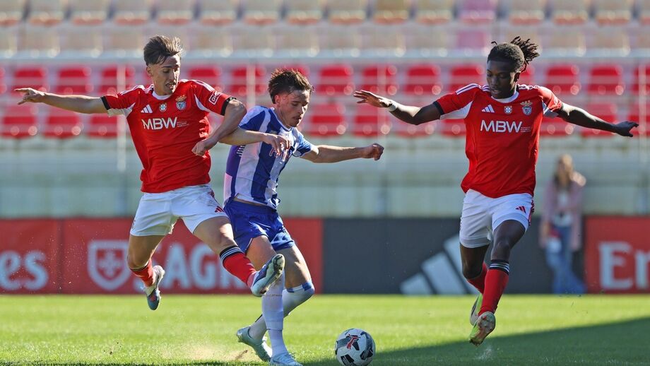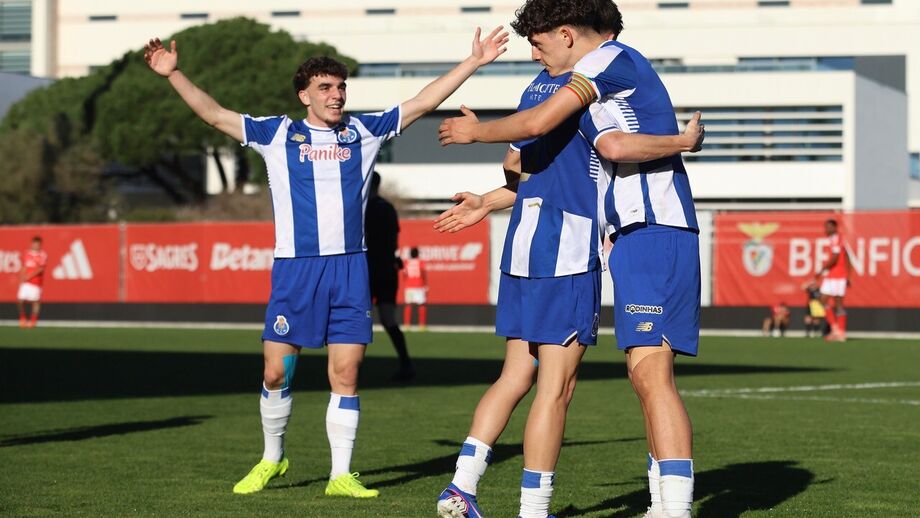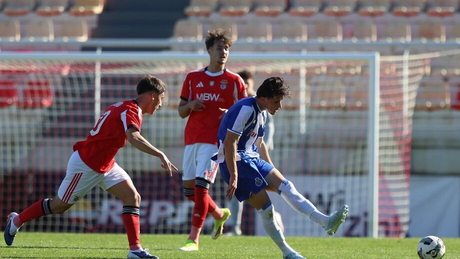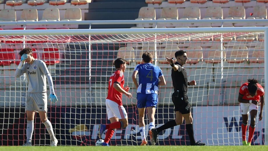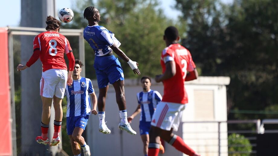 Que jogo de loucos! O Benfica e o FC Porto empataram (4-4) no Seixal, num encontro com várias cambalhotas no marcador. s encarnados já venciam por 2-0 aos 11 minutos, com bis de Umeh, mas um golo de Gonçalo Oliveira (17') mudou o encontro. Eduardo Ferreira e Duarte Cunha deram a reviravolta aos dragões. Na segunda parte, Duarte Cunha bisou (60') e a partida parecia sentenciada. Aos 74', João Afonso deu novas esperanças às águias e, no último lance do jogo, deu-se a explosão de alegria. Ao 90'+7, Tomás Soares saltou mais alto do que toda a gente e restabeleceu a igualdade.