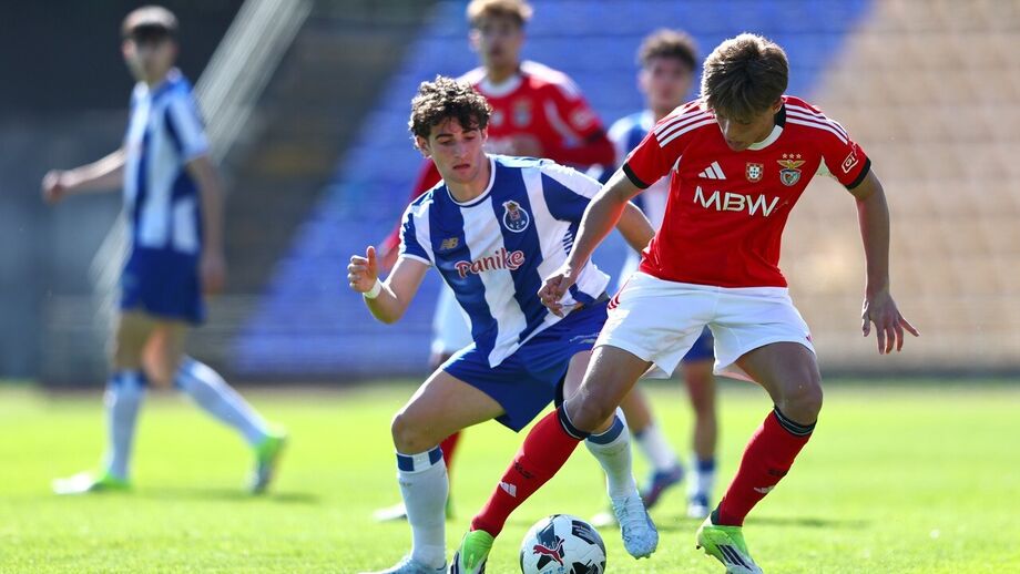 Acaba a partida no Estádio Municipal Dr. Jorge Sampaio! Depois de uma primeira parte sem muitas oportunidades, o regresso dos balneários trouxe cinco golos ao clássico e emoção até ao fim. O FC Porto reentrou com o pé a fundo no acelerador, e em três minutos marcou dois golos através de Tcherno Jamanca (51’) e Francisco Ferreira (54’). O Benfica reduziu aos 65 minutos por Tomás Almeida, deixando o jogo em aberto... até aos azuis e brancos voltarem a ampliar, desta feita por João Tavares que tinha acabado de entrar. A compensação trouxe calafrios para a equipa da casa que acabou a sofrer: Hugo Gomes fez o 3-2 aos 90’ + 5, e uma bola à barra no último minuto ia dando o empate ao Benfica, mas acabou com triunfo dos dragões.
