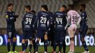 O encontro foi suspenso no início da segunda parte, aos 48 minutos, depois de os azuis terem ficado sem o número mínimo de futebolistas legalmente exigido para o desenrolar de um jogo (sete).