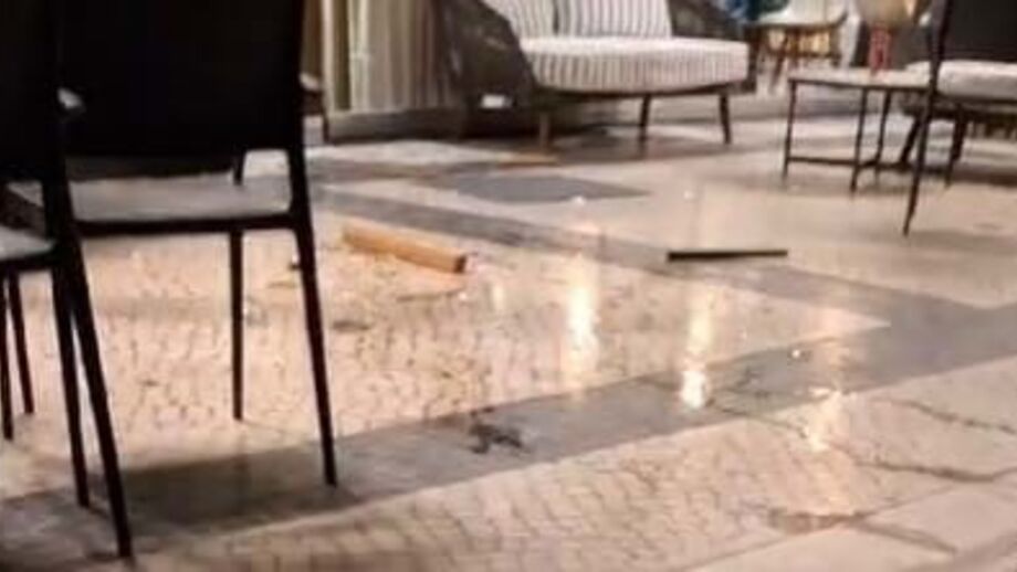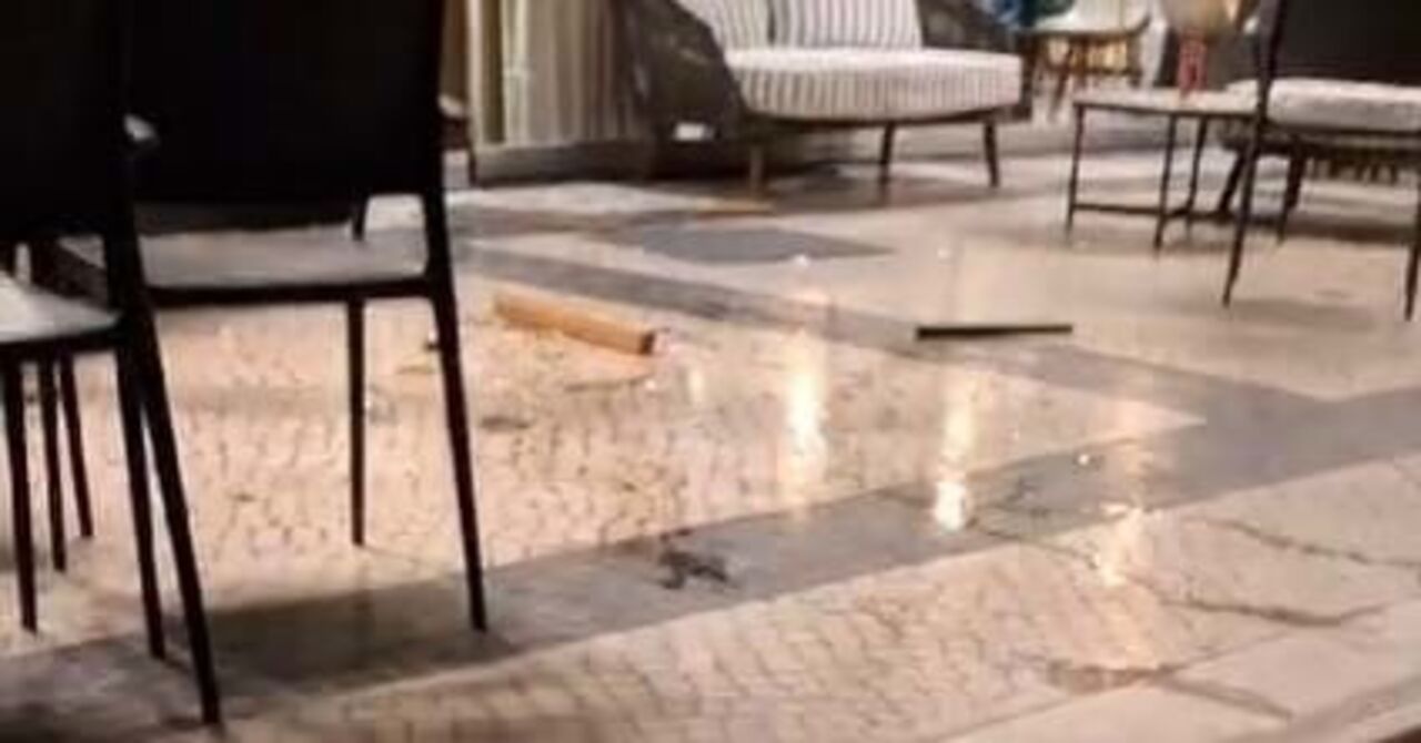 Danos visíveis à entrada do hotel