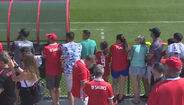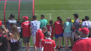 Ausentes da sessão - que conta com muitos adeptos nas bancadas do campo da Universidade de Rutgers, em Baltimore - estão Ebuehi, Jardel, Cervi, Fejsa, Taarabt, Chiquinho, Caio, Jota e Rafa, todos a fazer gestão de esforço, em virtude do particular de ontem, onde o Benfica goleou o FC Baltimore, por 6-0.