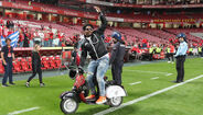 21h44 - De repente aparece uma scooter no relvado da Luz, com um adepto a levar Samaris à pendura.
