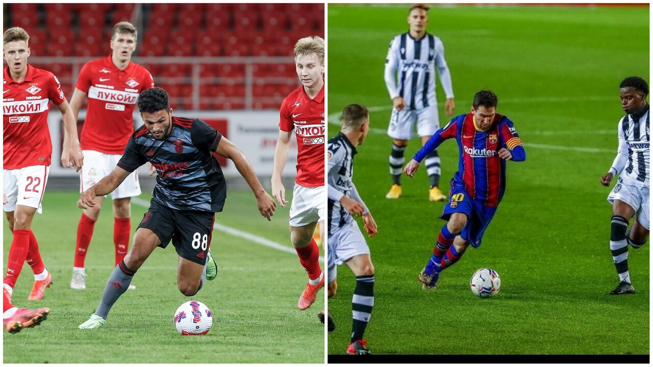 Gonçalo Ramos surge esta quarta-feira em destaque nas redes sociais do Benfica, isto depois de a página das águias em inglês publicar uma fotografia onde o jovem avançado encarnado aparece rodeado por quatro adversários do Spartak Moscovo... comparando este lance com um de Lionel Messi. O argentino aparece - na segunda foto da publicação - também com o mesmo de adversários em seu redor.
