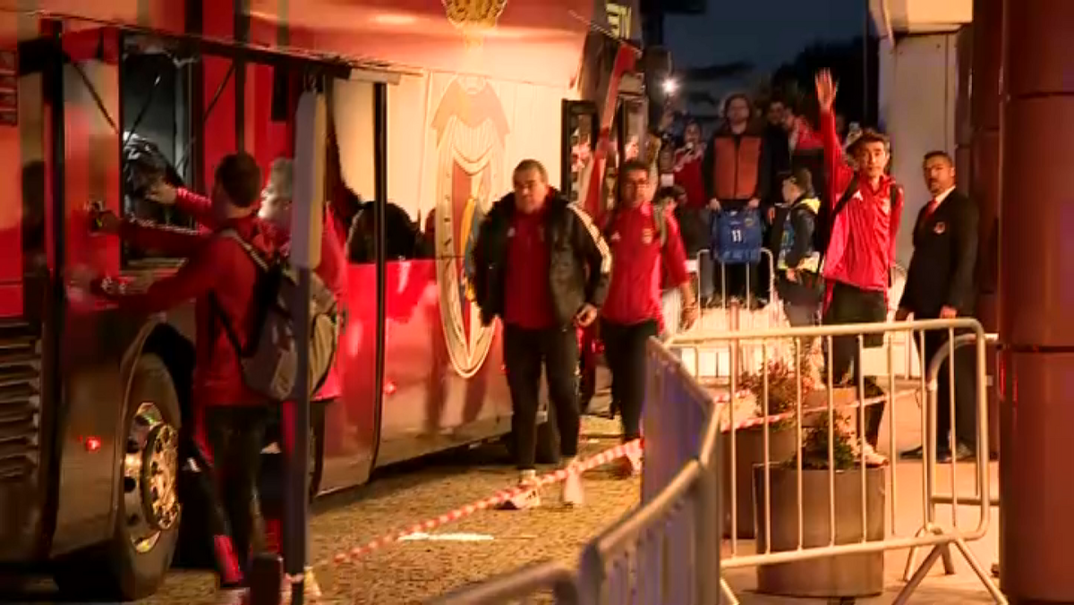 O autocarro que transportou a equipa encarnada chegou ao hotel pelas 20h35, tendo sido recebido por dezenas de adeptos, que entoaram os habituais cânticos de apoio. "Benfica, dá-me o 39", foi dos mais mais ouvidos. Bruno Lage, primeiro a sair em direção ao hotel, acenou aos adeptos e parou para dar autógrafos. Quantos aos jogadores, foram poucos os que pararam para satisfazer os pedidos dos adeptos, casos de Florentino e Carreras.