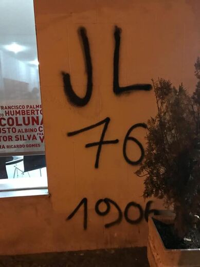 A Casa do Benfica em Almada foi vandalizada na madrugada deste domingo, após a vitória dos encarnados sobre o Sporting (4-3). Além dos vidros partidos, registou-se uma inscrição numa parede com a sigla 'JL 76 1906'. As águias reportam "danos muitíssimo avultados".