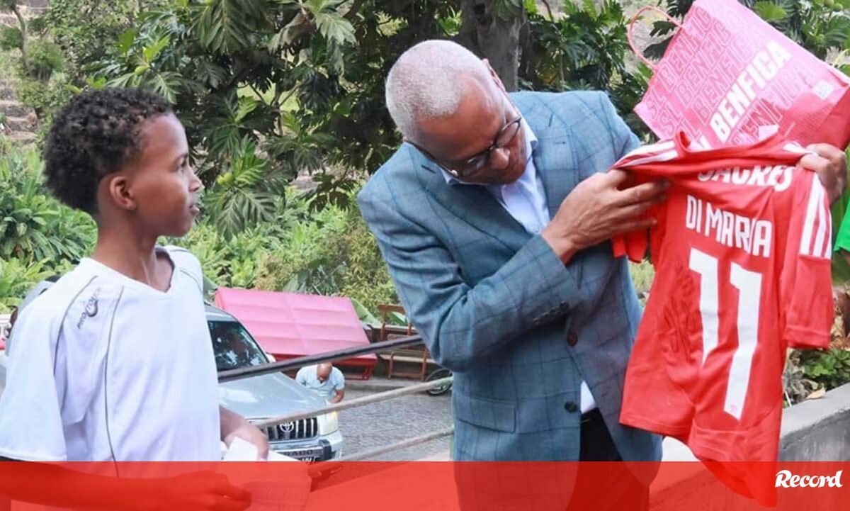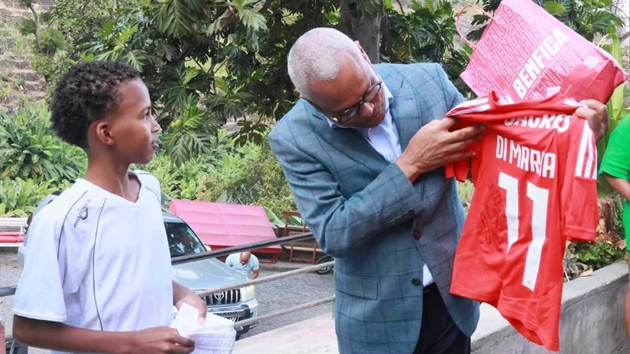 O jovem Cristian Gomes viveu neste sábado um dia inesquecível. O miúdo que surgiu há tempos numa publicação nas redes sociais com uma camisola com o nome e o número do seu ídolo, Di María, escrito à mão, recebeu um equipamento completo oficial do Benfica (incluindo calções, meias e uma camisola assinada pelo campeão mundial) e ainda um quadro do argentino autografado pelo jogador. Uma ocasião especial até porque a entrega foi feita por José Maria Neves, Presidente da República de Cabo Verde.