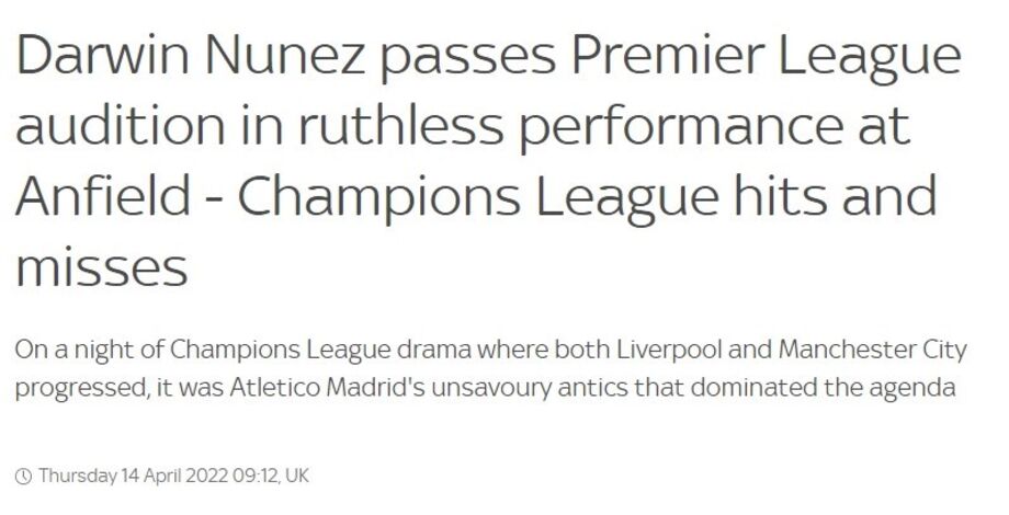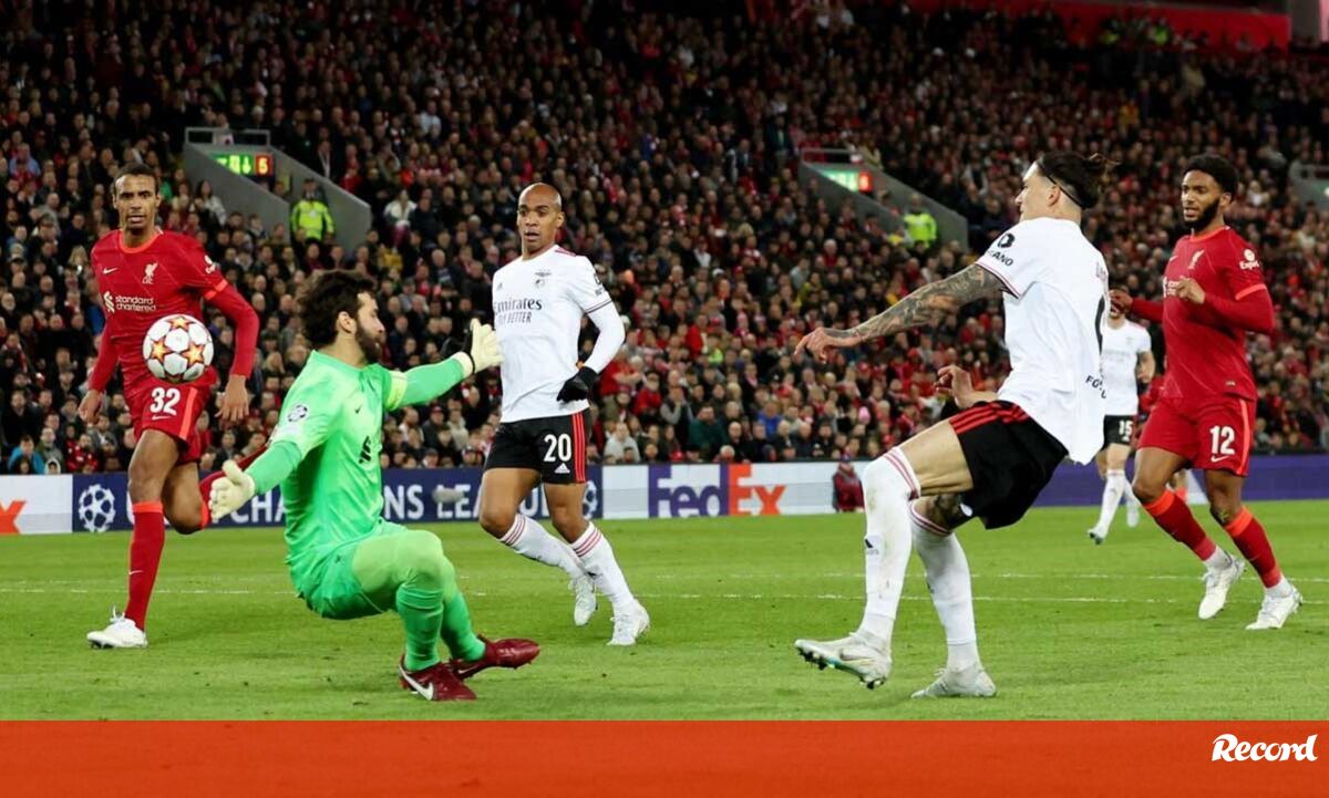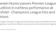 'Sky Sports': "Darwin passa audição para a Premier League numa exibição impiedosa em Anfield".