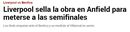 'Marca': "Liverpool termina o trabalho em Anfield para chegar às 'meias'".