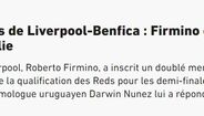 'L'Équipe': "Os melhores do Liverpool-Benfica: Firmino e Darwin, os artilheiros".