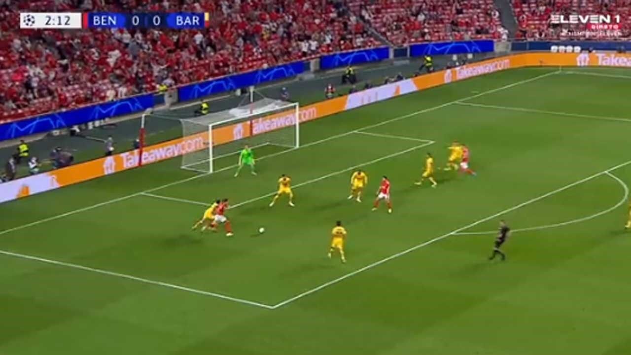 Aos 3' do Benfica-Barcelona, Darwin fez o 1-0 para as águias num lance individual. O uruguaio recebeu na esquerda, fintou Eric García e bateu Ter Stegen. Veja o lance em baixo: